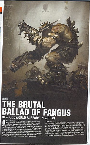 The article that first announced the creation of The Brutal Ballad of Fangus Klot, published by Game Informer in its April 2005 issue, after Oddworld Inhabitants had already made the decision to close internal video game development.